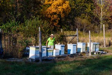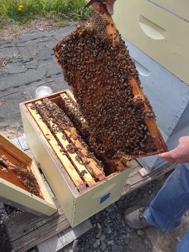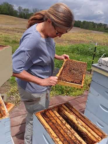 At Woodsedge Tree Farm, we are in our 5th decade of keeping bees and producing honey. You can purchase honey at our farm during Christmas tree season, and by appointment throughout the year. To place an order, call or text us and we will have a jar ready for pickup for you outside of our Honey House.
